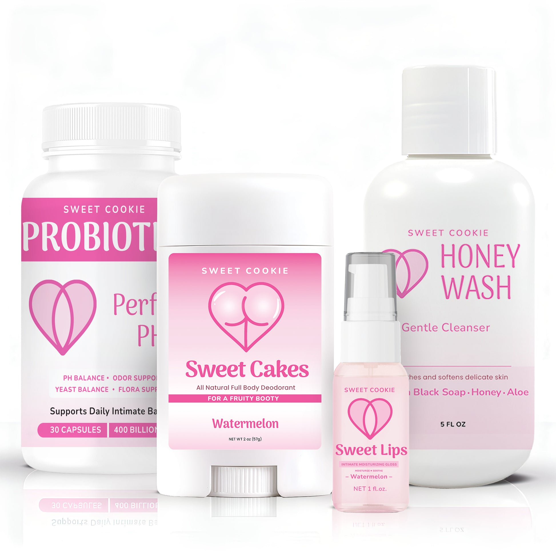 The Sweet Essentials Bundle brings together four of our core favorites designed to support moisture, freshness, and balance from the inside out. This routine helps you feel clean, comfortable, and confidently sweet every day.